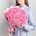 Монобукет из кустовых пионовидных роз Мисти Бабблз 50 см в розовой упаковке