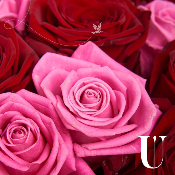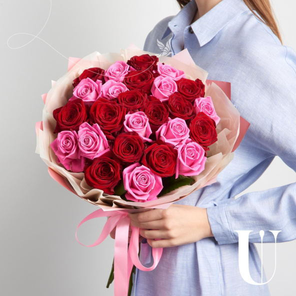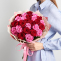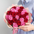 Монобукет из 7 роз Пинк Мондиаль в дизайнерской упаковке