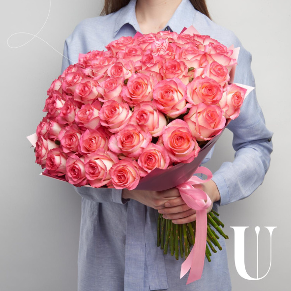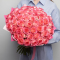 Букет из 15 пионовидных роз сорта Пинк Экспрешн в дизайнерской упаковке
