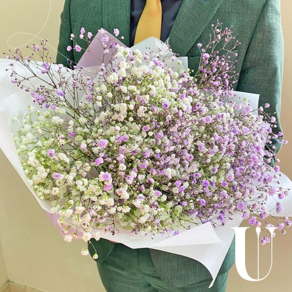 Монобукет из белой гипсофилы в стильной упаковке