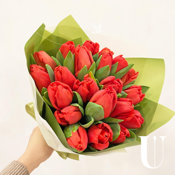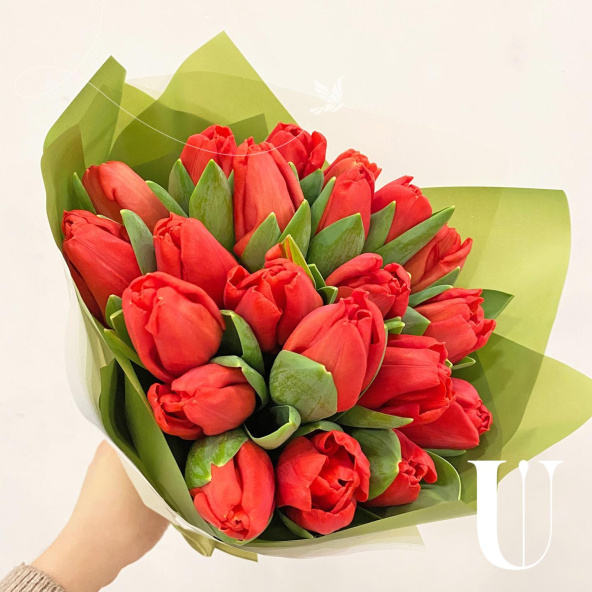 Букет из 15 белых тюльпанов в дизайнерской упаковке