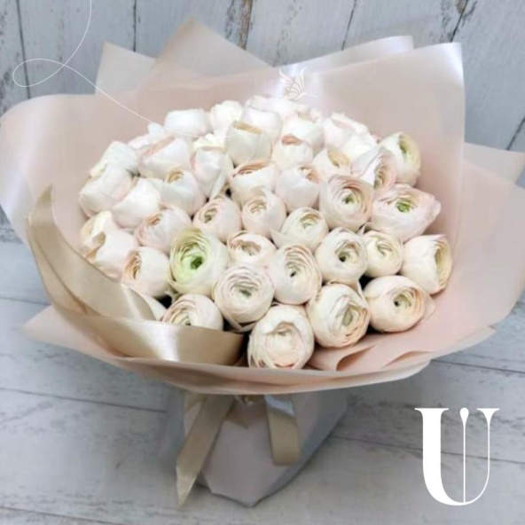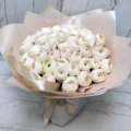 Мы перевяжем букет атласными лентами, упакуем в красивую бумагу и приложим карточку от вашего имени