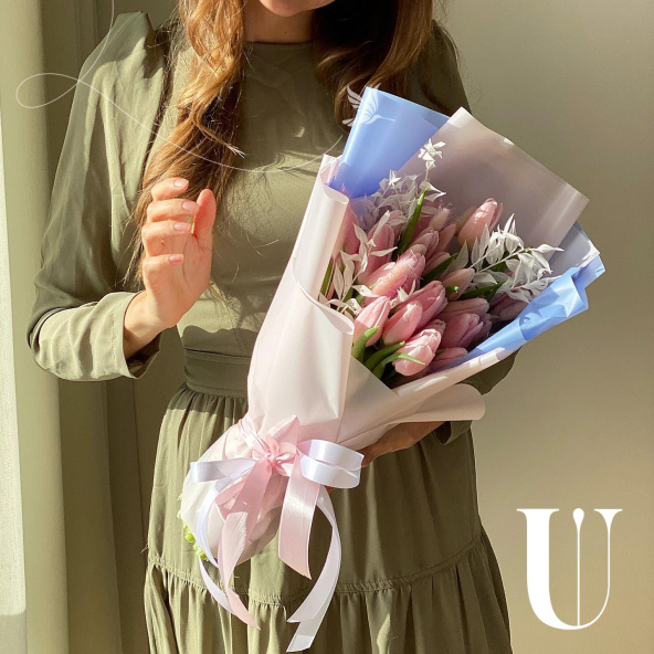 Монобукет из 19 тюльпанов микс в упаковке