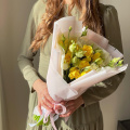 Монобукет из желтых гербер и эвкалипта в упаковке