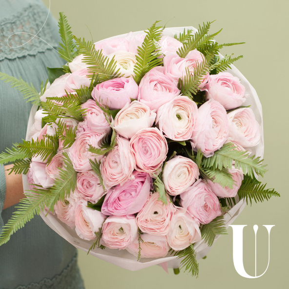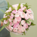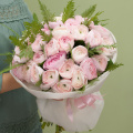 Монобукет из 23 розовых пионов и ромашки Камила в упаковке