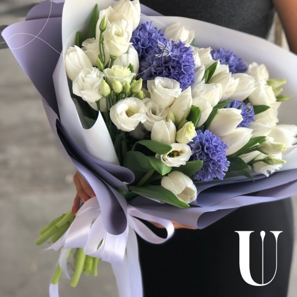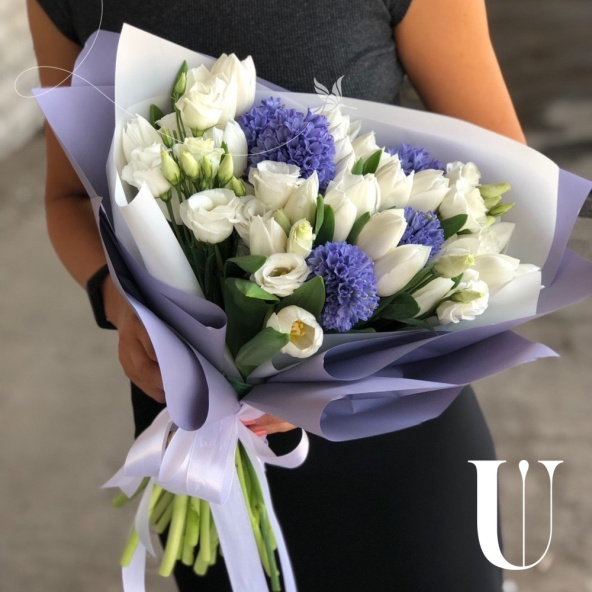 Монокопозиция из белой гипсофилы в глянцевой пленке
