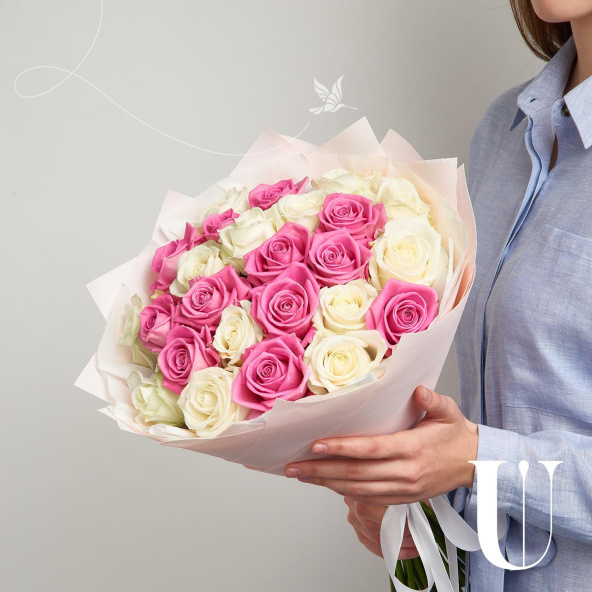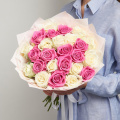 Монобукет из 11 роз Вайт Охара в розовой упаковке