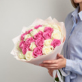 Монобукет из 7 роз Пинк Мондиаль в дизайнерской упаковке