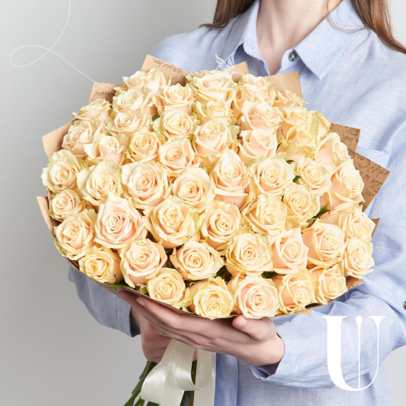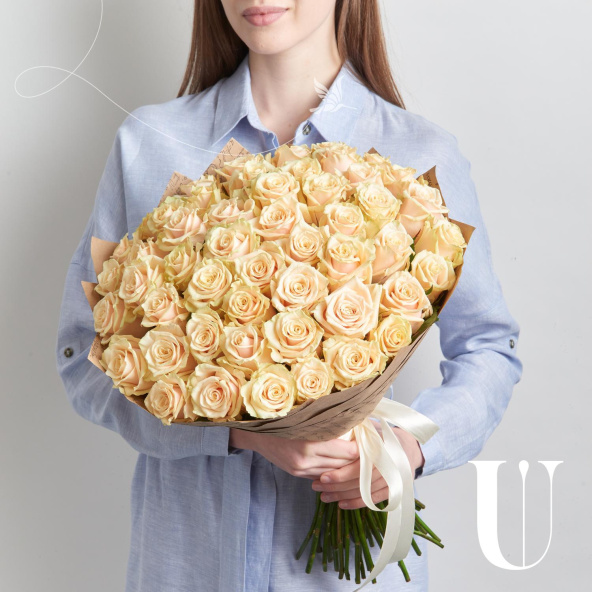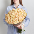 Монобукет из 51 белой розы Аваланж в стильной упаковке