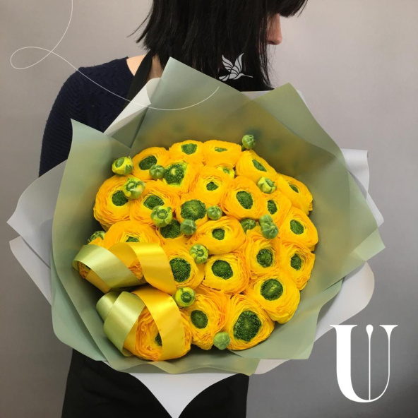Мы перевяжем букет атласными лентами, упакуем в красивую бумагу и приложим карточку от вашего имени