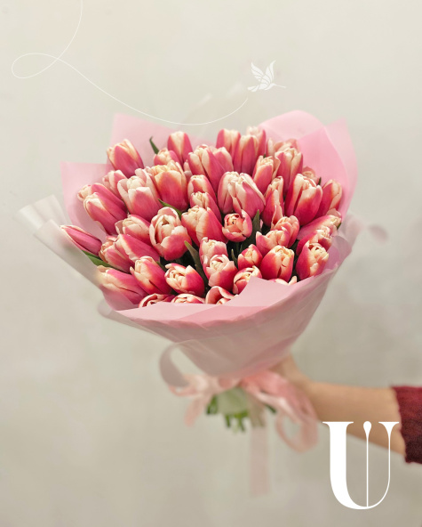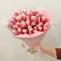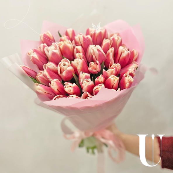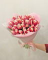 Монобукет из 49 розовых пионовидных тюльпанов в упаковке