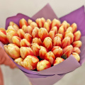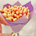 Монобукет из 25 фиолетовых тюльпанов в упаковке