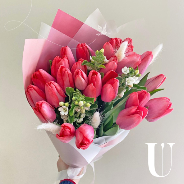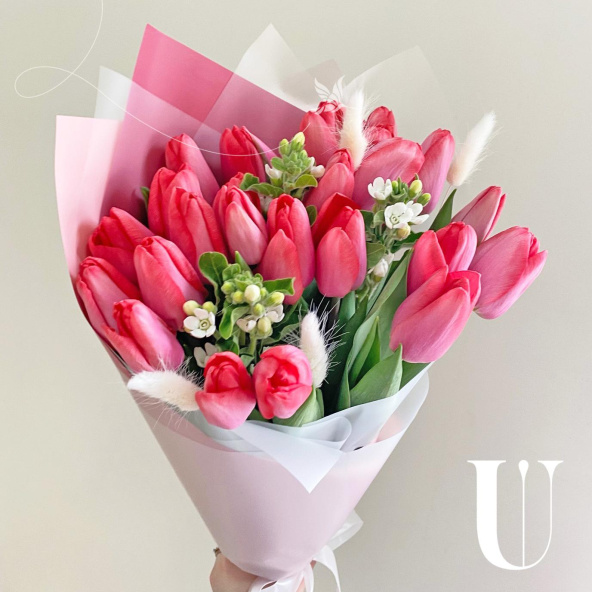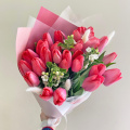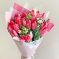 Мини-букет из 15 розовых тюльпанов в крафтовой упаковке