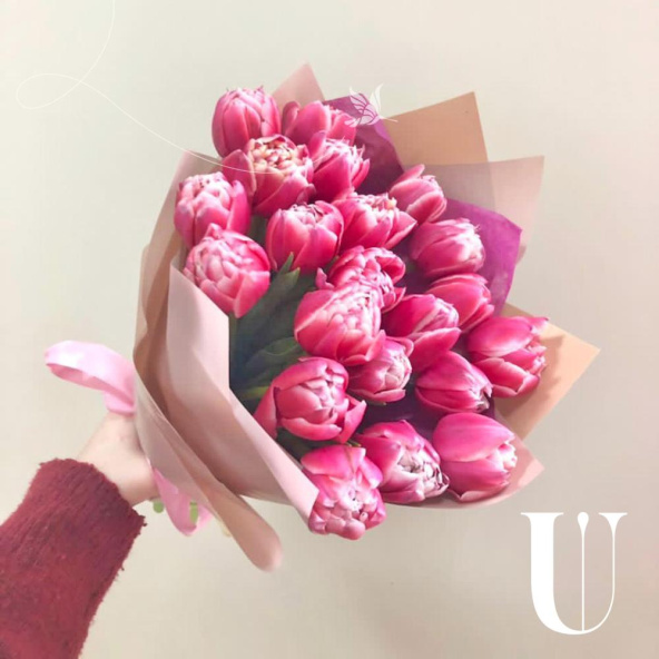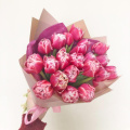 Монобукет из розовых кустовых роз в дизайнерской упаковке