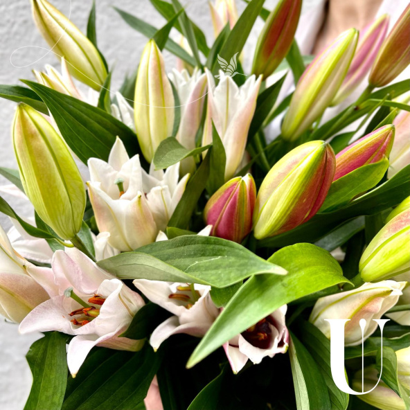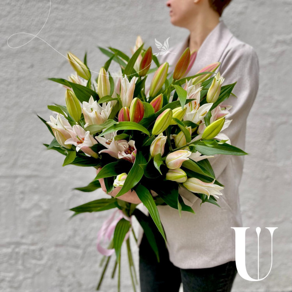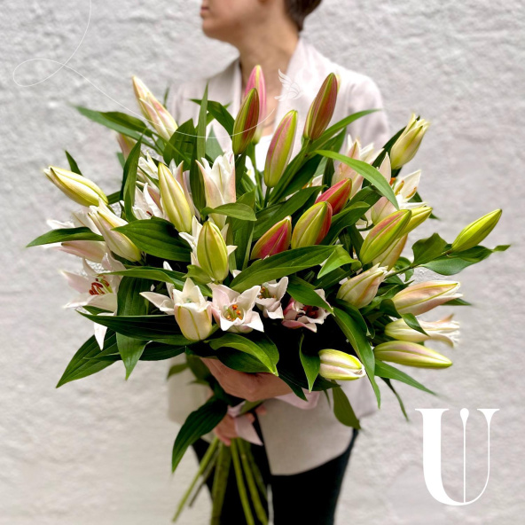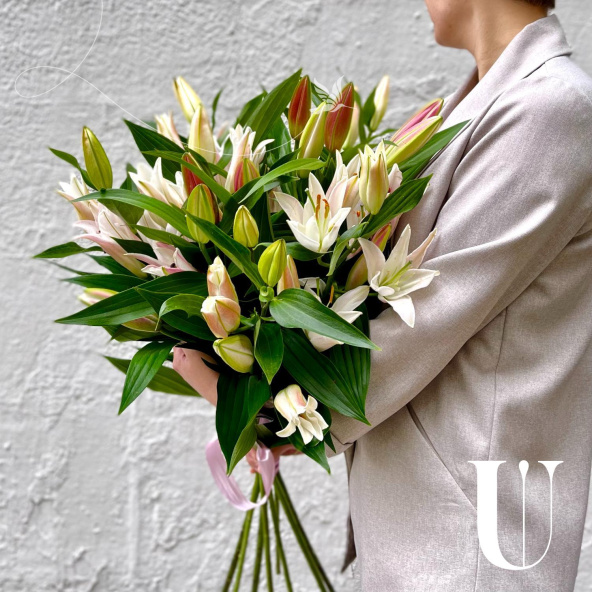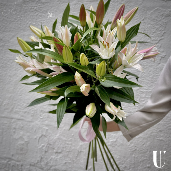 Монобукет из 9 белых лилий в матовой пленке