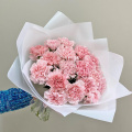 Монобукет из розовых кустовых пионовидных роз в упаковке