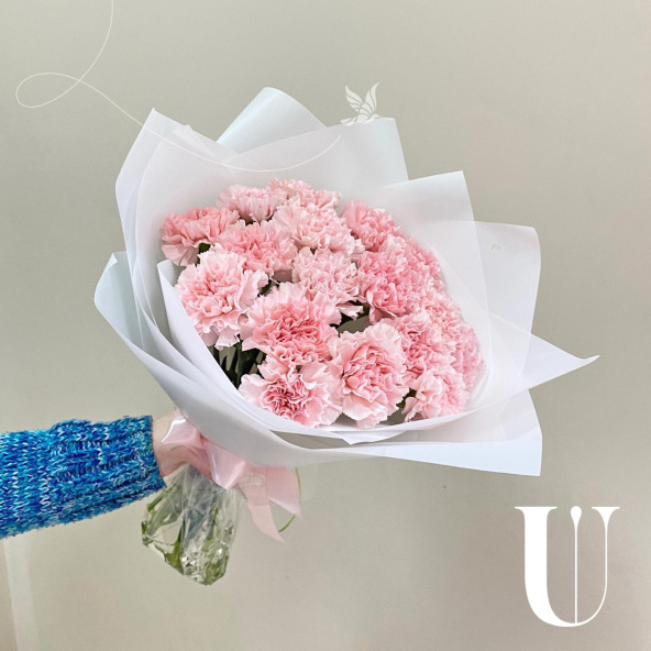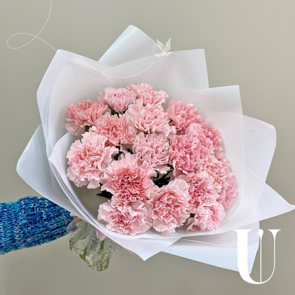 Монобукет из 25 розовых диантусов в розовой упаковке