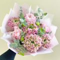 Монобукет из розовых кустовых пионовидных роз в упаковке