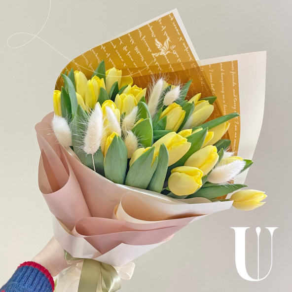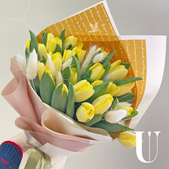 Монобукет из 25 фиолетовых тюльпанов в упаковке