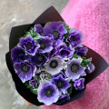 Мы перевяжем букет атласными лентами, упакуем в красивую бумагу и приложим карточку от вашего имени