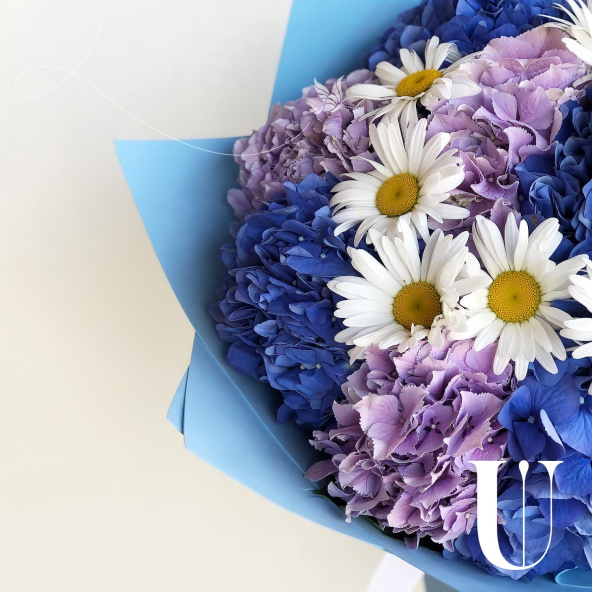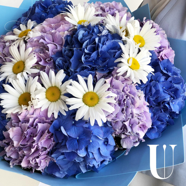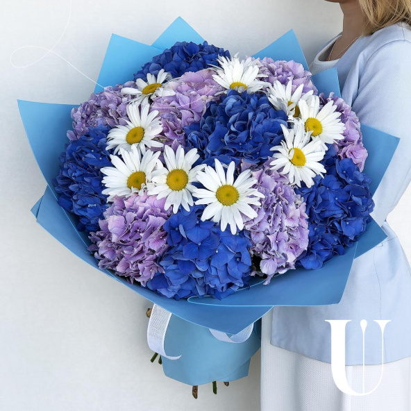 Великолепная гортензия в сочетании с ромашкой восхитит получателя