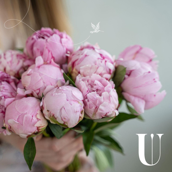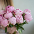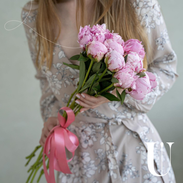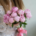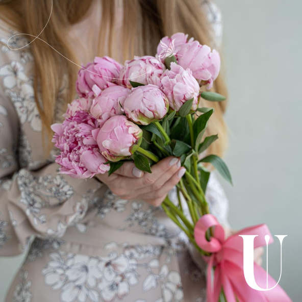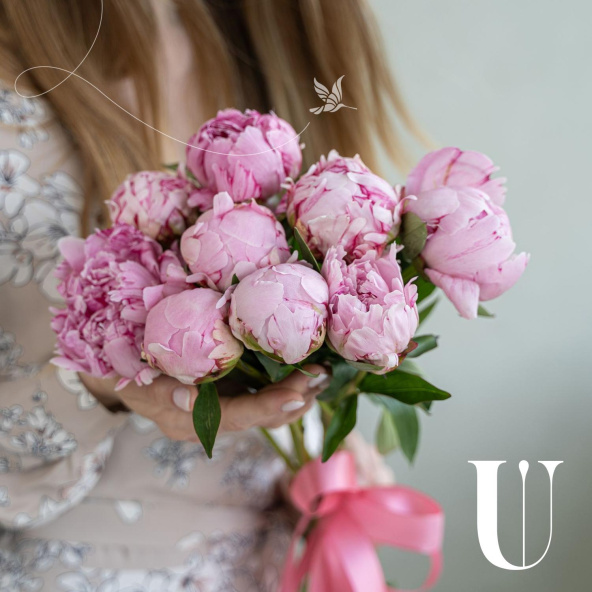 Монобукет из 9 коралловых пионов сорта Корал Шарм