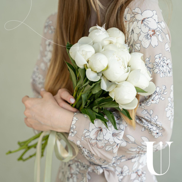 Монобукет из 9 розовых пионов сорта Сара Бернар