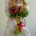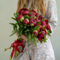 Монобукет из 15 розовых пионов сорта Сара Бернар