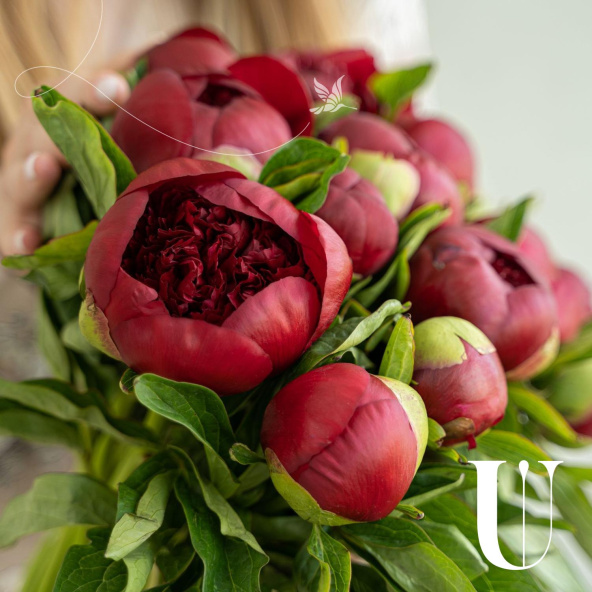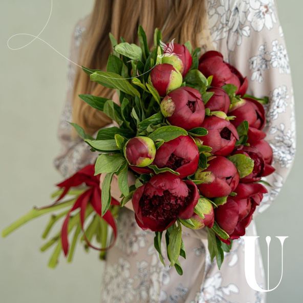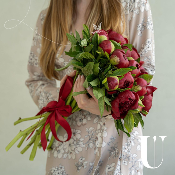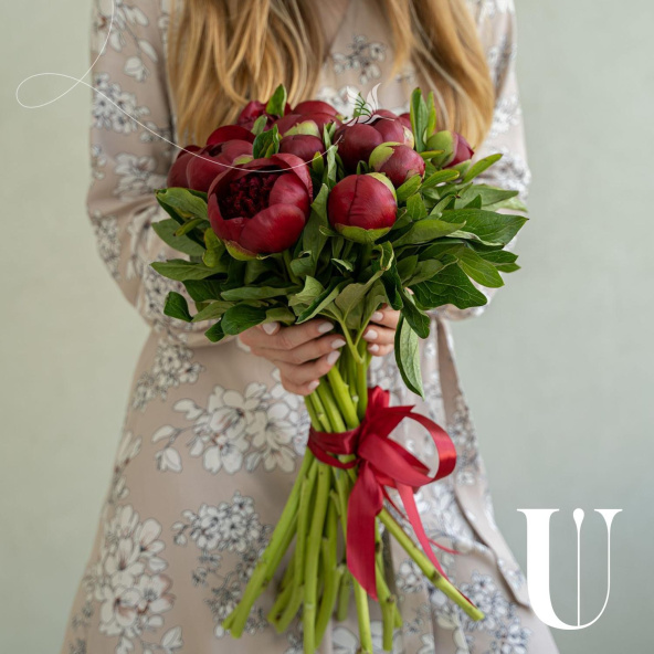 Монобукет из 11 пионов Сара Бернар в крафтовой упаковке