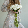 Монобукет из 19 белых роз в дизайнерской упаковке