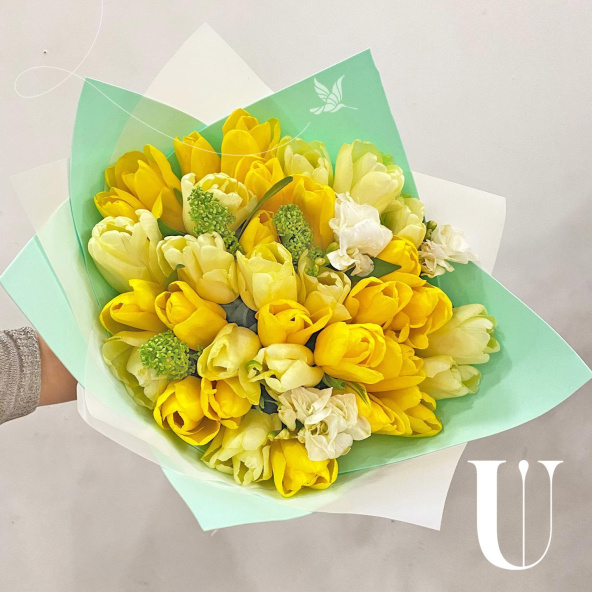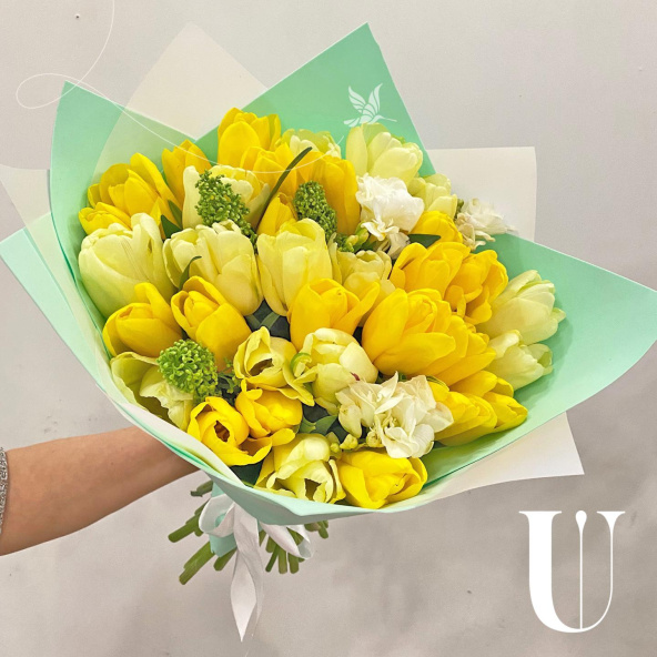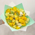 Букет из кустовых роз Лидия и роз Аваланж в дизайнерской упаковке