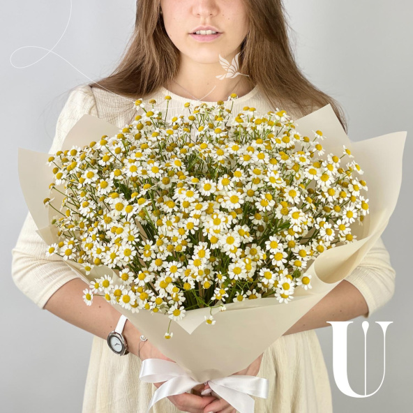Монобукет из белых сантини Маве6рик в дизайнерской упаковке