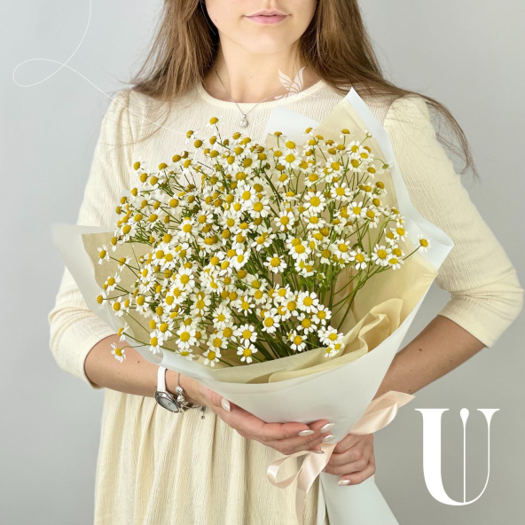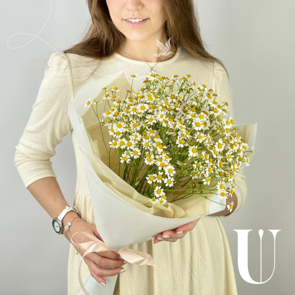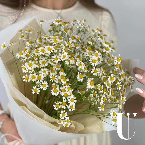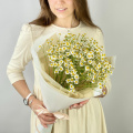 Стильный моно букет из 11 белых кустовых роз в дизайнерской упаковке