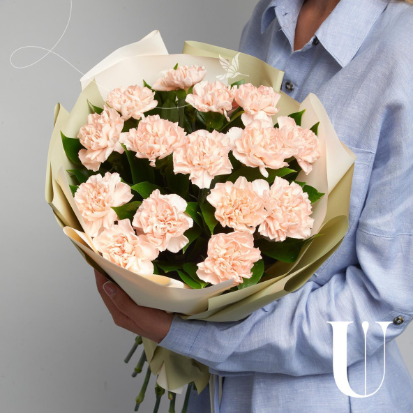 Монобукет из 16 нежных диантусов в дизайнерской упаковке