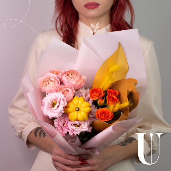- Роза кустовая, оранжевая, 50 см. - 1 шт