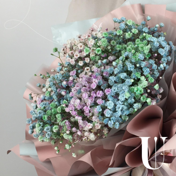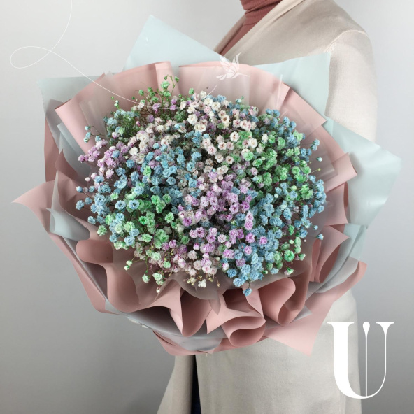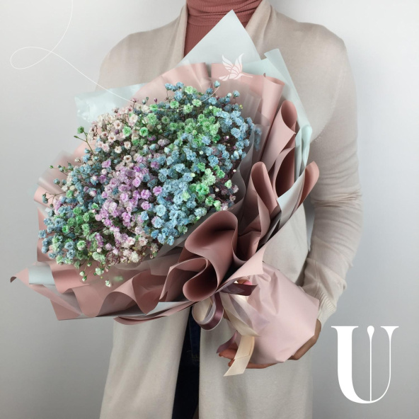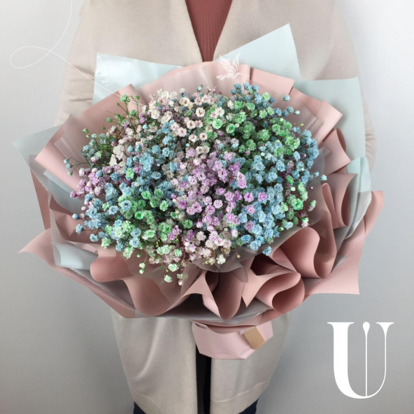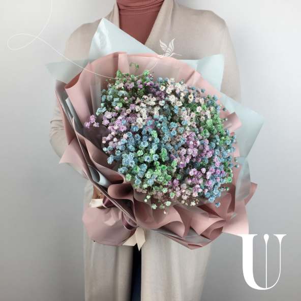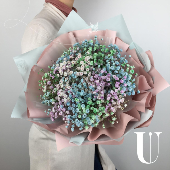 Букет из разноцветных гербер мини в дизайнерской упаковке