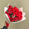 Мини-букет из 15 розовых тюльпанов в крафтовой упаковке
