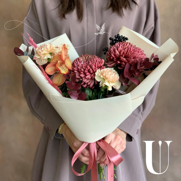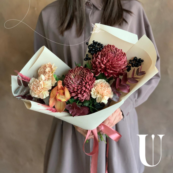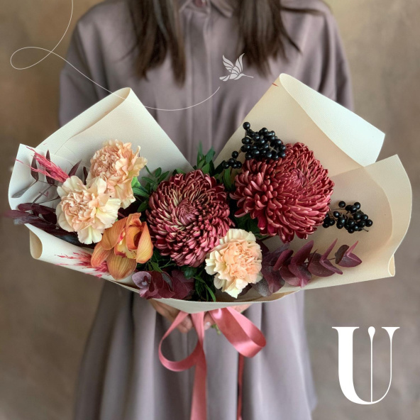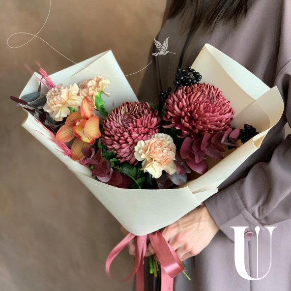 - Хризантема Бигуди, бордовая, 50 см - 2 шт