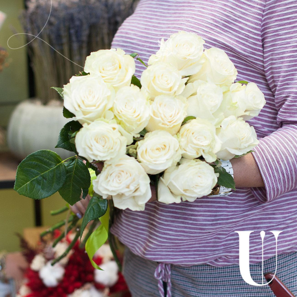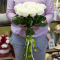 Монобукет из 19 белых роз в дизайнерской упаковке