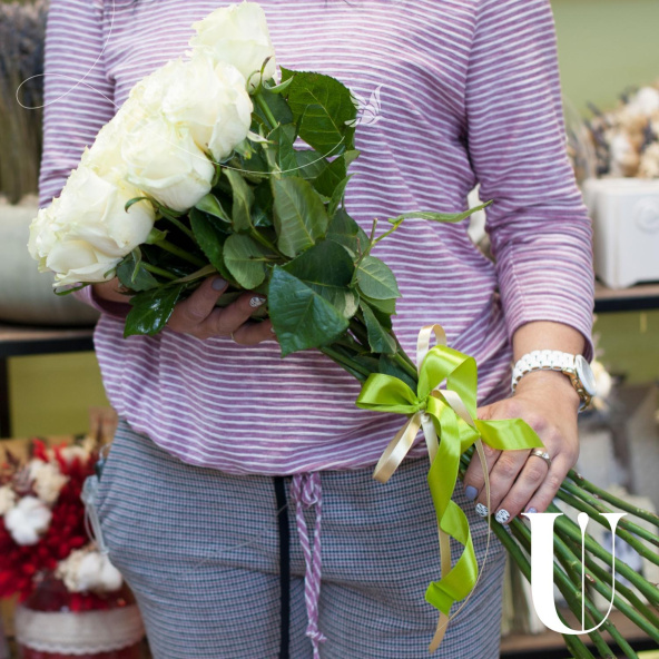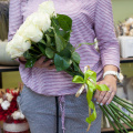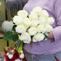Монобукет из 21 белой розы 60 см. это универсальный подарок, который подойдет для самых важных моментов