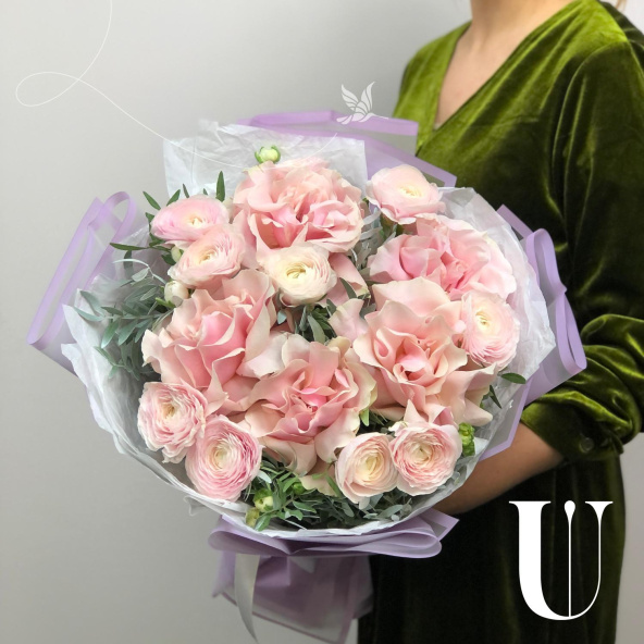 Восхитительная композиция с необычайно красивой Эквадорской розой и нежнейшим ранункулюсом непременно порадует получателя