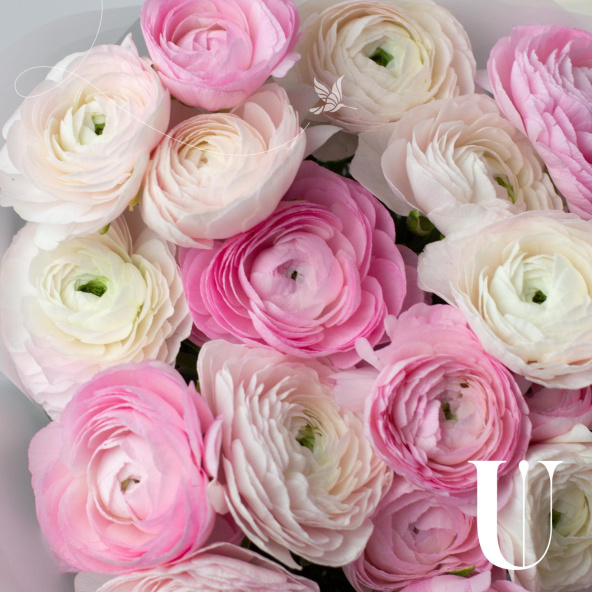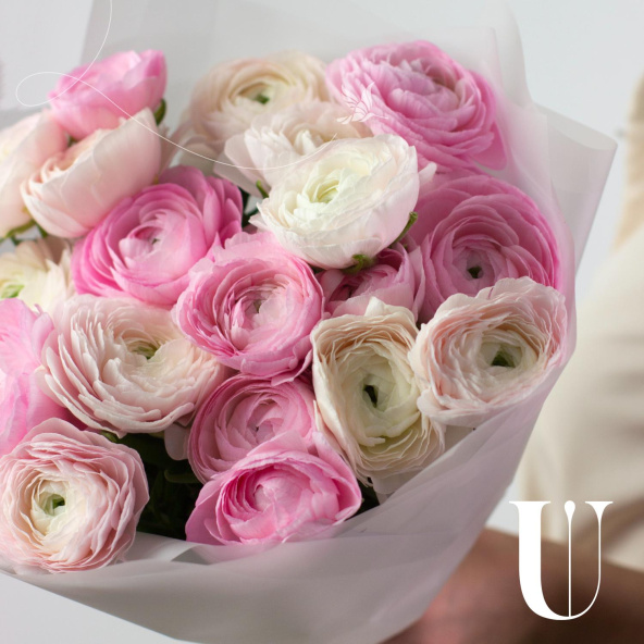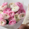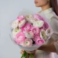 Состав: Ранункулюс ханой 10 шт, ранункулюс розовый 9 шт, писташ