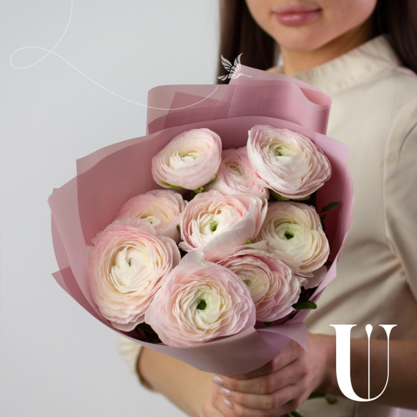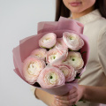 Монобукет из кустовых пионовидных роз Бомбастик в розовой упаковке