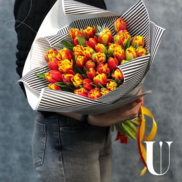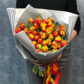 Монобукет из тюльпанов микс в крафтовой упаковке