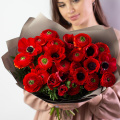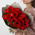 Большой букет из кустовых пионовидных роз Бомбастик в упаковке