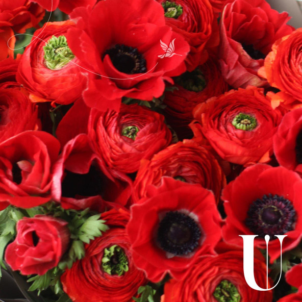 Монобукет из кустовых пионовидных роз сорта Бомбастик