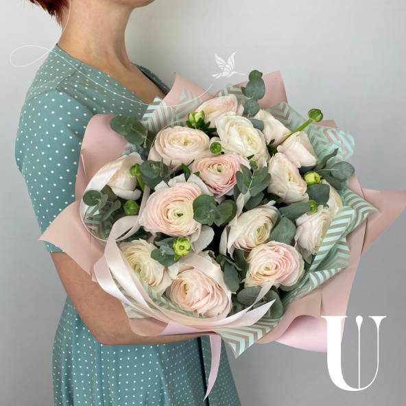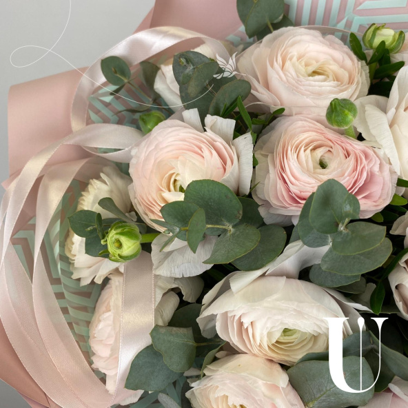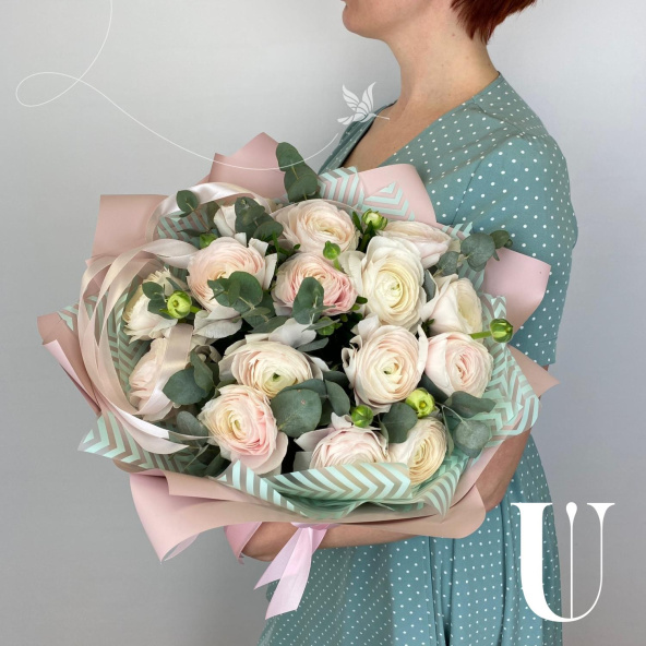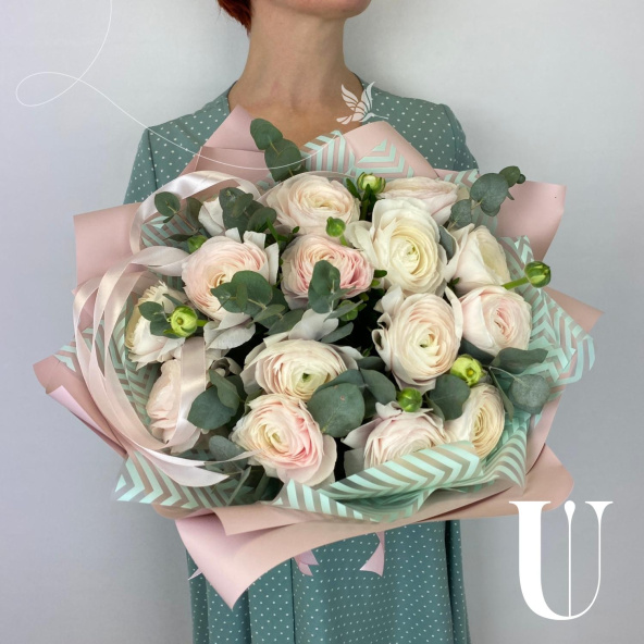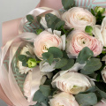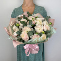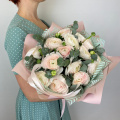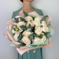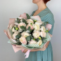 Монобукет из 25 пионовидных розовых роз в дизайнерской упаковке