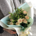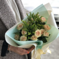 Нежные кустовые пионовидные розы в дизайнерской упаковке