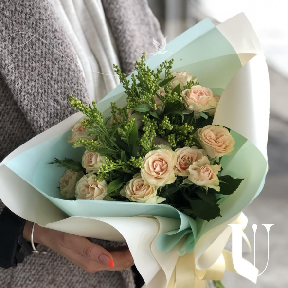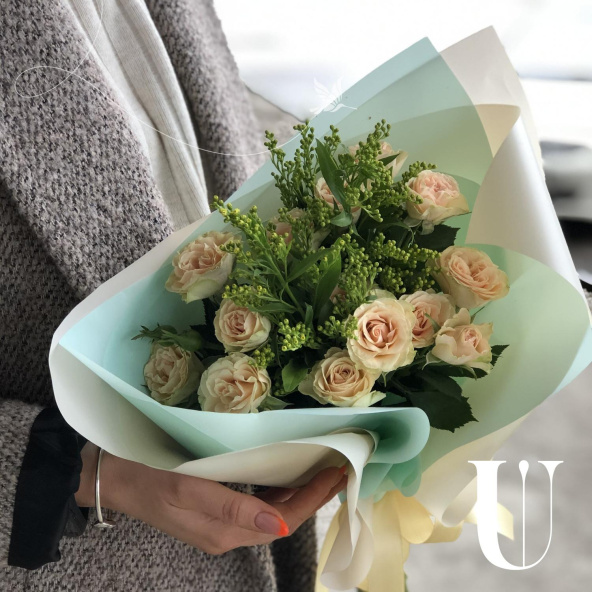 Монобукет из кремовых кустовых роз сорта Ангелина