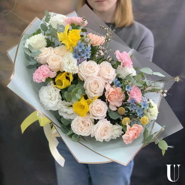 - Роза кустовая пионовидная, Бомбастик, нежно-розовая, 50 см. - 4 шт